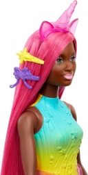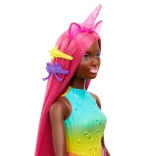 - Bábika Barbie-Jednorožec nosí dúhový outfit, čižmy po kolená a odnímateľný chvost jednorožca na kreatívne hranie v prestrojení.