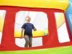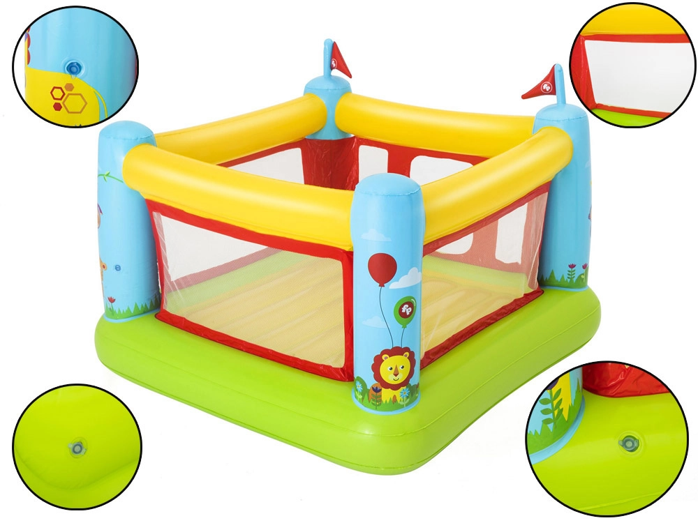 Nafukovací hrad Bestway FISHER‑PRICE vytvára bezpečný a pohodlný priestor na skákanie, vystrájanie aj voľnú hru. Priehľadné sieťované panely zabezpečujú dobrú viditeľnosť a prúdenie vzduchu, zatiaľ čo mäkké vzduchové steny a podlaha tlmia dopady. Vďaka kompaktným rozmerom sa hodí do väčšiny detských izieb aj na terasu či záhradu.