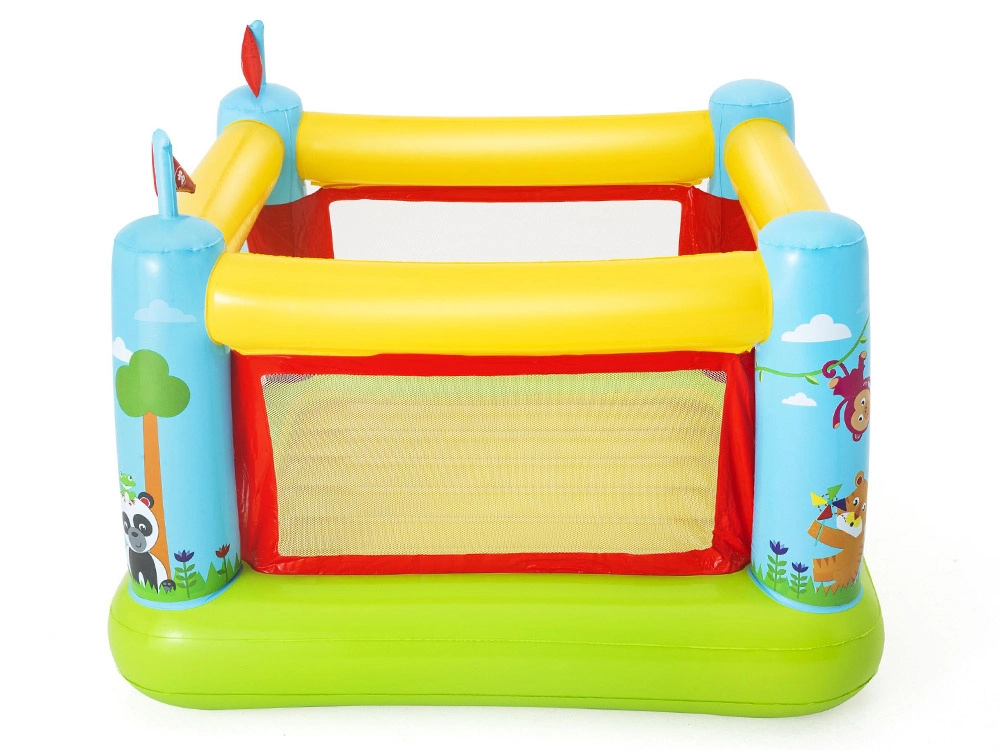 Odolný materiál PVC je navrhnutý na časté používanie a jednoduchú údržbu. Vstupný otvor umožňuje pohodlné nastupovanie a vystupovanie a kolíky na zaistenie udržia atrakciu na mieste aj pri živšej hre vonku.