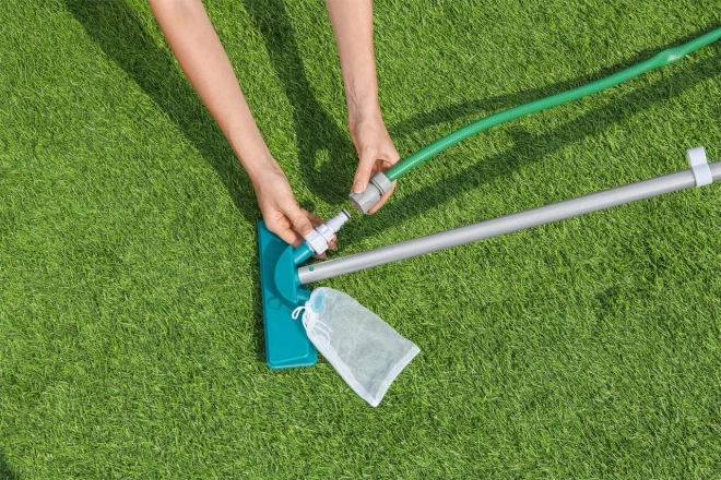 Súprava obsahuje komponenty ako vysávač a sieťka pre efektívne odstránenie nečistôt z bazéna.