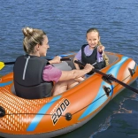 Nafukovacia podlaha poskytuje extra pohodlie pri sedení, zatiaľ čo plne nafúknutá konštrukcia zabezpečuje stabilitu a bezpečnú plavbu na pokojných vodách.