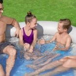 Užívajte si letnú pohodu s nafukovacím rohovým bazénom BESTWAY s rozmermi 213 × 206 × 53 cm. Ponúka rýchle nafúknutie a vypustenie, stabilnú konštrukciu s dvoma vzduchovými komorami, široké mäkké steny na pohodlné oprenie, integrované nafukovacie operadlá s vankúšikmi a držiaky na nápoje. Skvelá voľba pre rodinný relax na záhrade.