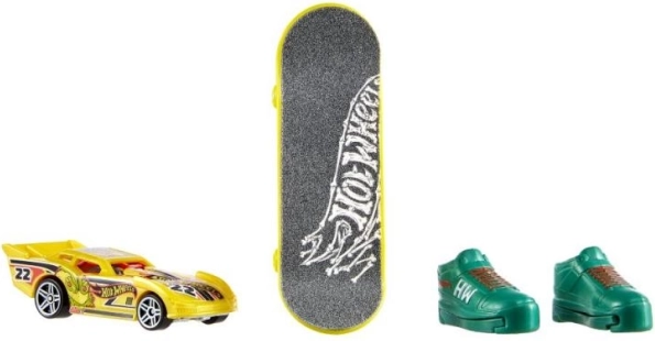 Set obsahuje Hot Wheels autíčko a fingerboard pre kombináciu rôznorodých herných prvkov a zberateľskú hodnotu.
