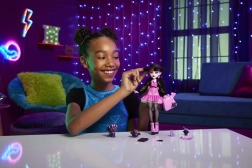 Bábika Draculaura očarí prepracovaným outfitom v ružovej a čiernej, ktorý podčiarkuje jej ikonický, jemne gotický vzhľad. Set dopĺňajú tematické drobnosti a verný miláčik, s ktorými deti ľahko vymyslia desiatky príbehov. Vďaka kĺbom možno bábiku jednoducho pózovať na hranie aj vystavenie.
