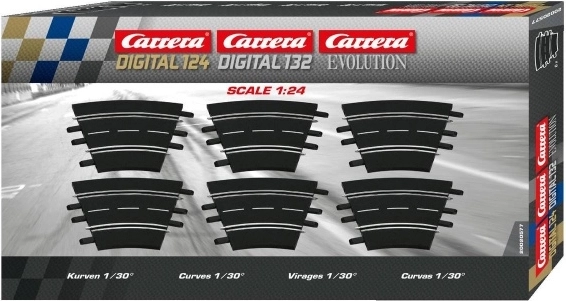 Rozšírte svoju autodráhu o precíznu zákrutu 1/30° kompatibilnú so systémami Carrera Evolution, Digital 132 a Digital 124. Balenie obsahuje 6 dielov = 180° s polomerom R1 pre dynamické, technické pasáže a realistický závodný zážitok.
