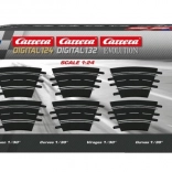 Balenie obsahuje 6 dielov, čo spolu vytvára 180° oblúk. Vďaka polomeru R1 je možné vytvárať ostrejšie pasáže, ktoré zvýšia napätie pretekov a variabilitu layoutu. Pre perfektné dokončenie je možné doplniť o vnútorné krajnice 20590 a vonkajšie krajnice 20567.