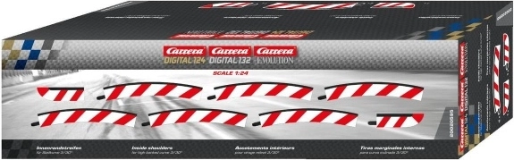 Praktická sada vnútorných krajníc pre klopenú zákrutu 3/30° rozšíri vašu autodráhu CARRERA a zaistí plynulejší a bezpečnejší prejazd. Obsahuje 6 ks krajníc, kompatibilných so systémami Evolution, Digital 132 a Digital 124 a s polomerom R3.