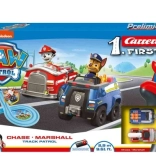 Zábavná autodráha pre najmenších pretekárov: CARRERA First s motívom Tlapková patrola ponúka trať dlhú 2,9 m, analógový batériový systém, dve autá CHASE a MARSHALL, zúženie pre napínavé súboje, točiacu sa bránu a bezpečné ovládače pre deti od 3 rokov.