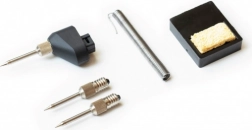 - Kompletná výbava v balení vrátane cínu, 3 spájkovacích hrotov a hubky na čistenie.