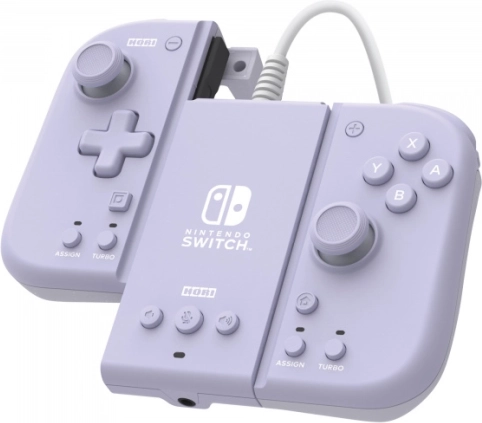 HORI Split Pad Pro + nástavec pre Nintendo Switch v levanduli. Ergonomický úchop, Turbo, zadné spúšte, audio vstup. Handheld aj drôtový režim.