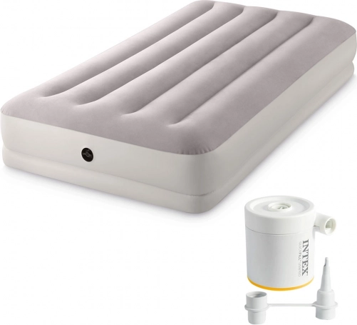 Praktická nafukovacia matrac značky INTEX s rozmermi 191 × 99 × 30 cm pre pohodlný spánok jednej osoby doma aj na cestách. Vďaka technológii Dura-Beam Fiber je stabilná a dobre podopiera telo. Príjemný semišový (flock) povrch je mäkký na dotyk a nešmýka sa. Súčasťou je kompaktná USB elektrická pumpa na rýchle nafúknutie i vyfúknutie a transportný vak na jednoduché prenášanie.