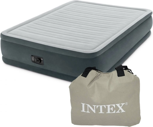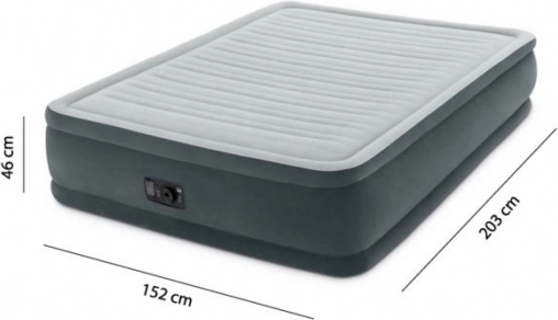 Nafukovacia matrac Intex (203x152x46 cm) je ideálnym riešením pre pohodlné spanie pre dvoch ľudí doma alebo na cestách. Vďaka vstavanej elektrickej pumpe dodáva matrac výhodu rýchleho nafúknutia za len 3 minúty a jednoduchého vyfúknutia za 1 minútu.
