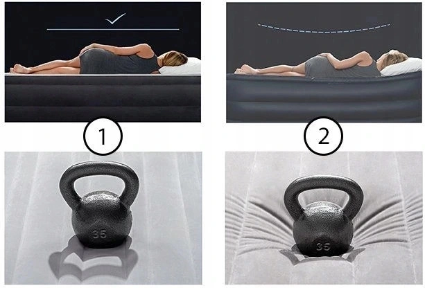 Vstavaná elektrická pumpa (220–240 V) nafúkne lôžko približne za 250 sekúnd. Vďaka praktickému ventilu možno matrac behom chvíľky vyfúknuť, zložiť a uložiť. Integrovaný zvýšený vankúš podporuje správnu polohu hlavy a krku.