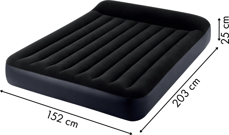 Táto komfortná dvojlôžková nafukovacia posteľ INTEX v elegantnej tmavej farbe sa skvele hodí do interiéru aj na chatu. Horný velúrový povrch je príjemný na dotyk a nešmýka sa, zatiaľ čo vnútorné Dura‑Beam Fiber výstuhy zabezpečujú pevnosť a rovnomerné rozloženie hmotnosti pre zdravý spánok.