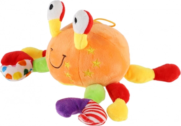 Táto farebná plyšová hrkálka krab zaujme bábätká na prvý pohľad. Ľahká, dobre uchopiteľná konštrukcia a príjemný plyš robia z hračky ideálneho parťáka do postieľky, kočíka aj na cesty. Jemné zvukové efekty pri zatrasení prirodzene rozvíjajú sluch aj koordináciu ruky a oka.