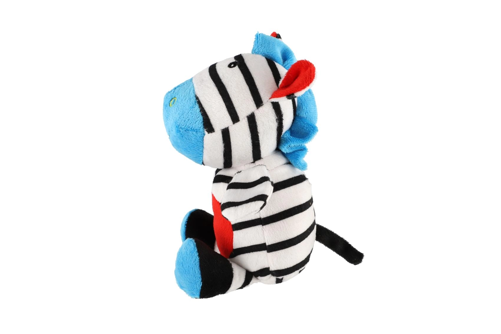 Objavte mäkkú a pritúlivú plyšovú zebru s hrkálkou, ktorá je navrhnutá na rozvoj zmyslov aj motoriky tých najmenších. Hebký povrch šetrný k detskej pokožke a bezpečne vyšívané detaily z nej robia dokonalého parťáka do postieľky, kočíka aj na cesty.