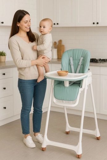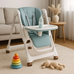 Praktická detská jedálenská stolička ECOTOYS pre deti od 6 mesiacov kombinuje bezpečie, pohodlie a ľahkú údržbu. Ponúka nastaviteľnú výšku sedadla, polohovateľný operadlo, 5-bodové pásy a dvojitý odnímateľný táck s miestom na fľašu. Vďaka skladacej konštrukcii, kolieskam s brzdou a poťahu z odolnej eko kože je ideálna do každej domácnosti.