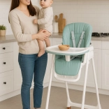 Výška sedadla, sklon operadla aj opierka nôh sa prispôsobia veku a potrebám dieťaťa – od prvej lyžičky až po samostatné stolovanie.