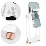 Rýchle zloženie šetrí miesto. Kolieska s gumovým behúňom chránia podlahu a aretácia zaistí stabilitu pri kŕmení.
