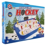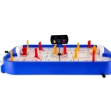 Komplet obsahuje všetko, čo potrebujete na hru: ihrisko, dvoch brankárov, dve bránky, dva puky a desať hráčov. Vďaka kompaktným rozmerom 53 × 37,5 × 7 cm sa ľahko zmestí na bežný stôl a rýchlo sa pripraví na hru. Vhodné pre deti od 3 rokov aj dospelých, ktorí ocenia jednoduché pravidlá a dynamickejšiu hrateľnosť.