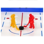 V balení nájdete ihrisko, ukazovateľ skóre, 2 puky, 2 brankárov, 2 bránky a 10 hráčov – stačí rozbaliť a začať hrať.
