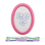 - Plastový rámček s napnutým plátnom s predtlačeným obrázkom, dve ďalšie predlohy na vyšívanie, bavlnky