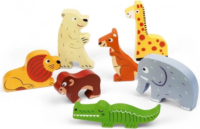Táto krásne ilustrovaná drevená vkladačka prináša deťom radosť z objavovania a učenia. Sedem kusov zvieratiek zo ZOO – napríklad slon, lev či krokodíl – má na podklade zodpovedajúce farby, čo deťom pomáha ľahšie pochopiť vzťah medzi tvarom a farbou.