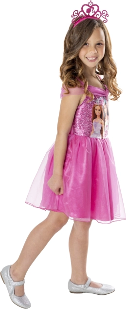 Zažiarte na každej oslave v detskom kostýme Barbie classic pre vek 7–8 rokov. Šaty s tylovou spodničkou vytvárajú nadýchaný efekt a súčasťou je aj štýlová čelenka. Ideálne na karneval, narodeninové párty aj tematické fotenie.