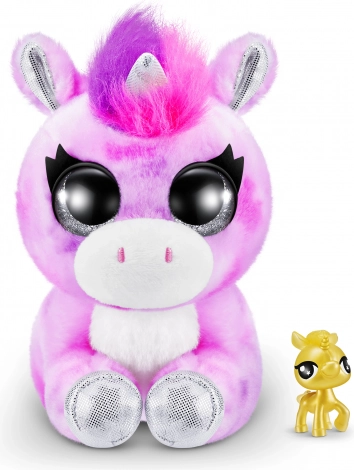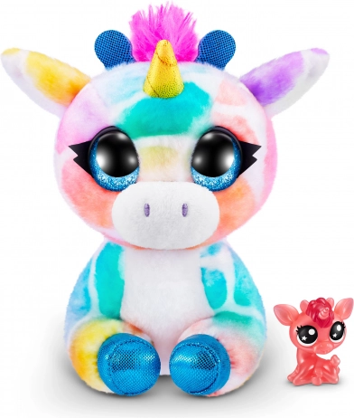 Vďaka kvalitnej hebkej plyši a výrazným trblietavým detailom sú zvieratká lákavé na prvý pohľad. Prekvapenie v kornúte zaručí radosť pri rozbaľovaní a adopčná karta dodá každému maznáčikovi osobité kúzlo.