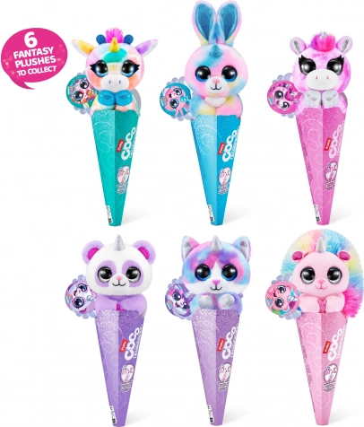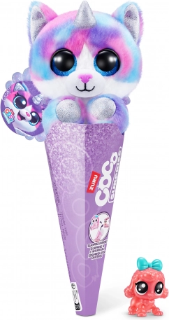 Ponorte sa do čarovného sveta COCO SURPRISE FANTASY. V každom kornúte čaká mäkučký plyšový kamarát – jednorožce, mačičky, pandy alebo zajačiky v dúhových farbách – a k tomu malý kamarát z pamäťovej peny, ktorý sa dá nasadiť na ceruzku. Ideálne na hranie, výzdobu školských potrieb aj rozšírenie vašej zbierky.