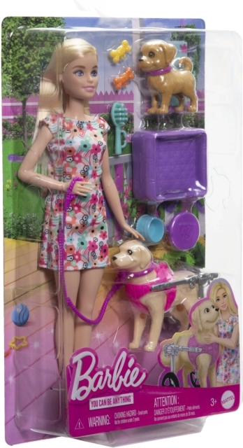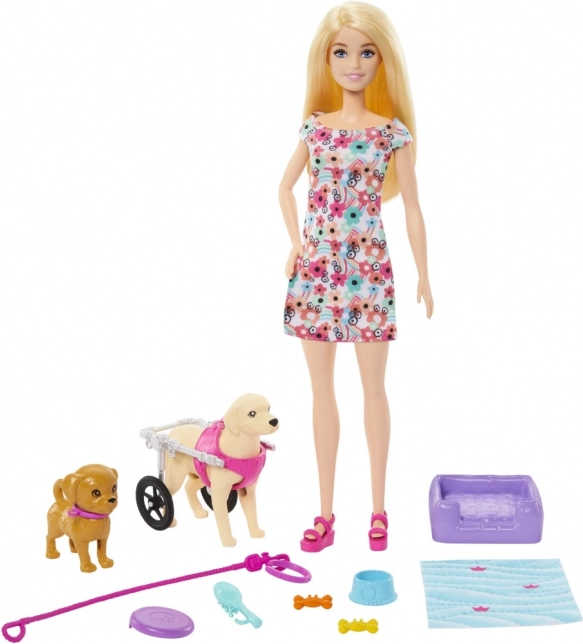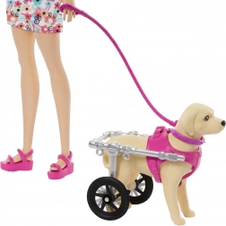 Užite si zábavu s Barbie a jej zvieracími priateľmi! Táto bábika so šteniatkom a psom na invalidnom vozíku inšpiruje k kreatívnemu hraniu a starostlivosti o všetky tvory. Vozík možno ľahko zložiť a znovu nasadiť, aby pomohol psíkovi dostať sa tam, kam potrebuje. Tento set obsahuje množstvo príslušenstva, vrátane misky na jedlo, obojku, pelechu a vodítka, ktoré sa perfektne vojde do ruky Barbie. Farby a dekorácie sa môžu líšiť.