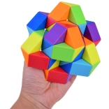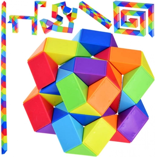 Táto farebná skladačka typu Magic Snake sa skladá z trojuholníkových segmentov, ktoré možno ľubovoľne otáčať a tvoriť tak nepreberné množstvo tvarov. Začnite jednoduchými objektmi a postupne si trúfnite na zložitejšie výtvory – fantázii sa medze nekladú.