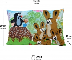 Mäkučký vankúšik s motívom obľúbeného Krtečka a zajacov, ideálny pre postieľku, na cesty alebo ako očarujúca dekorácia do detskej izby.