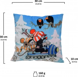 Mäkučký vankúšik s motívom obľúbeného Krtka a myšky vhodný do postieľky, na cesty i ako dekorácia do izby.