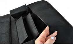 Organizér je vyrobený z filcového materiálu, ktorý zaručuje jeho ľahkosť a jednoduchú manipuláciu. Inštalácia organizéra je rýchla a intuitívna: vrchná časť sa pripevňuje na spodnú časť opierky hlavy pomocou suchého zipsu, a spodná časť sa uchytáva kovovými háčikmi k sedadlu.