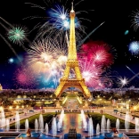 Eiffelova veža, Paríž, ohňostroje (nočná scéna)