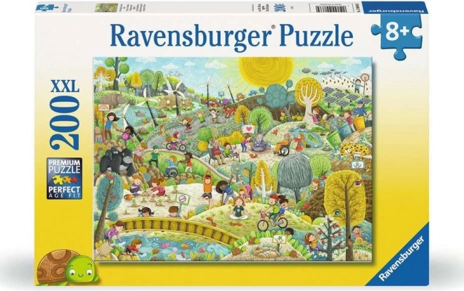 Puzzle Udržateľnosť XXL od spoločnosti Ravensburger prináša fascinujúcu výzvu pre všetkých milovníkov skladania. S rozmerom 49 x 36 cm po zostavení ponúka detailný obraz, ktorý zaujme a poteší.