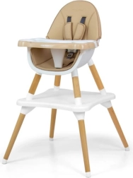 Stolička sa môže prispôsobiť veku a výške dieťaťa vďaka nastaviteľným päťbodovým bezpečnostným pásom. Taktiež je vybavená mäkkými ramennými prievlakmi, ktoré chránia pred oderom a čalúnenie z ekokože je odolné voči znečisteniu. Podnos s priehlbinou zabraňuje skĺznutiu predmetov.