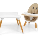Meniteľná konfigurácia z vysokej stoličky na sadu pre deti vrátane stola a stoličky.