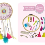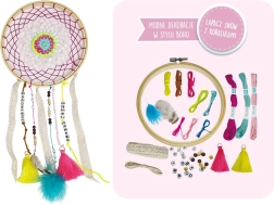 Vytvorte si vlastný boho lapač snov a rozvíjajte fantáziu. Tento štýlový doplnok sa skvele vyníma na stene aj v okne a vďaka 84 korálikom s písmenkami ho ozdobíte originálnymi nápismi. Súčasťou balenia je všetko, čo potrebujete na jednoduché tvorenie a osobitú dekoráciu detskej izby aj spálne.