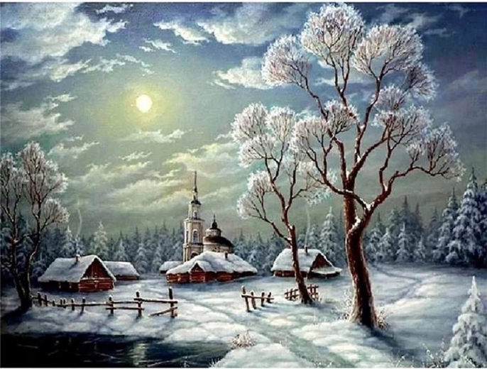 Táto kreatívna sada na diamantové maľovanie obsahuje všetko, čo potrebujete na vytvorenie nádherného trblietavého obrazu. Pomocou aplikačného pera nanášate jednotlivé kamienky na predtlačené plátno s lepiacou vrstvou – jednoducho, čisto a s krásnym výsledkom. Hotový obraz s motívom zimnej krajiny môžete následne zarámovať a vystaviť.