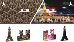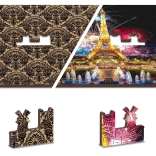 Skladajte farebný motív nočnej Paríža alebo druhú stranu s opakujúcim sa vzorom len podľa tvarov dielikov. Dve výzvy v jednom balení.