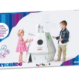 Kartónová stavba vo forme vesmírnej lode je ľahká, ľahko zostaviteľná a podporuje ekologické myslenie.