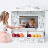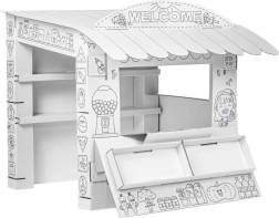 Ponorte svoje deti do sveta hier s týmto kartónovým hracím stánkom. Jeho dizajn pripomína malý obchod, kde deti môžu rozvíjať svoje sociálne zručnosti a kreativitu: