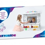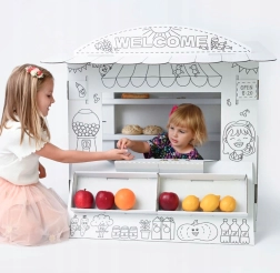 Tento stánok z kartónu umožňuje deťom hrať sa na obchod a učiť sa základným sociálnym zručnostiam.
