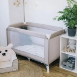 Mäkký matrac poskytuje bábätku komfort pri odpočinku, zatiaľ čo priehľadné bočnice zabezpečujú lepší dohľad aj prúdenie vzduchu. Súčasťou je praktická prepravná taška, ktorá chráni postieľku pred nečistotami a uľahčuje prenášanie.