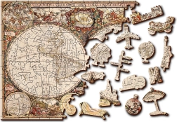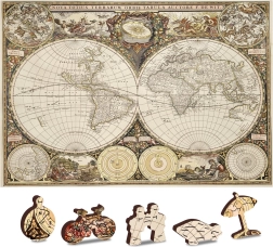 Drevené puzzle s motívom antickej mapy poteší milovníkov originálnych skladačiek aj zberateľov netradičných darčekov. Vďaka obojstrannému prevedeniu 2v1 môžete skladať podľa obrázka na líci, alebo si vyskúšať zložiť rubovú stranu s opakujúcim sa vzorom čisto podľa tvarov dielikov.
