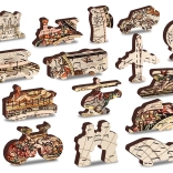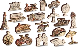 Špeciálne tvarované dieliky vo forme zvierat, stavieb a predmetov dodávajú skladaniu nový rozmer. Precízne laserové zvýraznenie detailov a kvalitná HDF doska (3–4 mm) zabezpečujú odolnosť a príjemný pocit pri manipulácii. Puzzle je navyše EKO Friendly 100%: balenie je kompletne bez plastu, diely sú uložené v papierovom sáčku v krabičke.