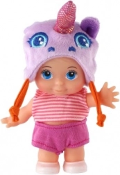 Táto malá bábika s veľkými očami a veselým výrazom je skvelým spoločníkom na každodenné hranie. Pevné plastové telíčko dobre drží tvar, pohyblivé paže v ramenách umožňujú ľahké polohovanie a prezliekanie. Farebná zvieracia čiapočka dodáva bábike jedinečný štýl a podporuje rozprávanie príbehov.