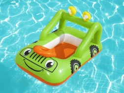 Farebný nafukovací čln od značky Bestway, dizajnovaný v tvare terénneho auta s volantom, je určený pre deti od 3 rokov. Zábava vo vode s týmto člnom bude pre vaše dieťa nezabudnuteľná. Vyrobený je z odolného vinylu a disponuje zámkom proti úniku vzduchu. Grafika člnu pripomína zelené terénne vozidlo a nafukovací volant pozýva k veľkým vodným dobrodružstvám.